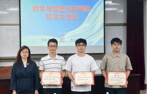 三位校友结合自身学术研究、成长成才实践经历,通过具体案例解析数学方法的实际应用,指出数学专业在该领域的应用价值和发展前景,特别是个人成长历程中的学习方法、科研心得、职业选择等宝贵经验,为在校学生提供了可借鉴的发展路径。互动环节中,同学们踊跃提问,数学232班樊玉红同学询问就业和考研如何选择,数据231班梁家均同学提出自己考研方向的困惑,数据231班李欣蓉同学提出报考院校专业的抉择等问题。王桐远副教授一一给予详细指导,鼓励同学们在学习中深耕探索,在工作中勇挑重担。